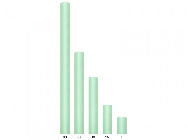 Tylová stuha v peprmintové barvě o rozměrech: 0,5 x 9 m. Tato ozdoba se skvěle hodí na svatbu.